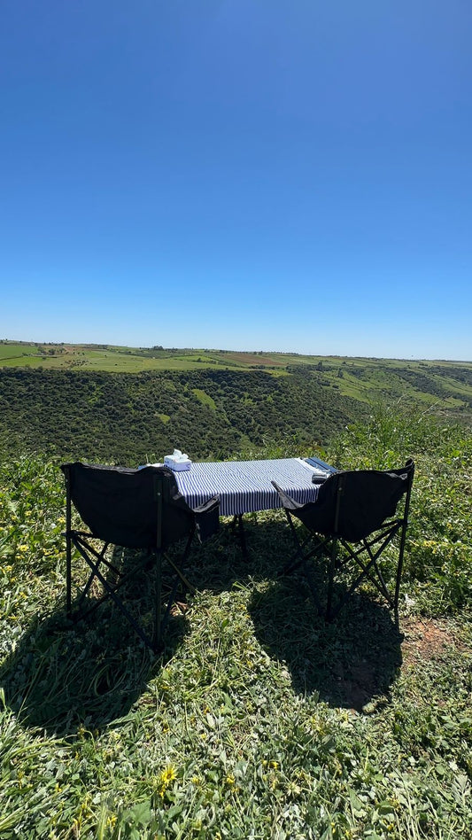 طابلة بيكنيك محمولة مع 2 كراسي – الراحة ديالك فكل خرجة